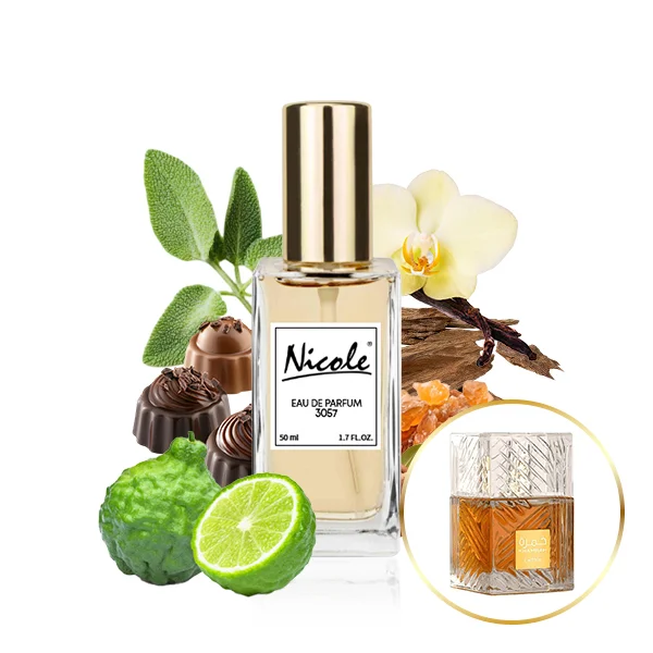 Nicole 3057 EDP is een unisex oosterse geur die kostbare specerijen, de warmte van houtachtige tonen en de zachtheid van vanille harmonieus combineert. De topnoten bevatten de frisse citrus van bergamot, omlijst door warme, fluweelachtige kruidige tonen van kaneel en verfijnde salie. Het hart van het parfum onthult een heerlijk romige pralinegeur die samensmelt met zoete fruitige noten en nuances van tuberoosbloemen. De basis van Nicole 3057 EDP biedt een weelderig aromatisch spoor waarin de sensuele zoetheid van vanille samengaat met kruidige waardevolle houttonen, zoete rokerige oudh, gerookte aromatische hars, kruidige tonkabonen en vanilline harsige benzoë, stralend in het zachte licht van verfijnde amber.